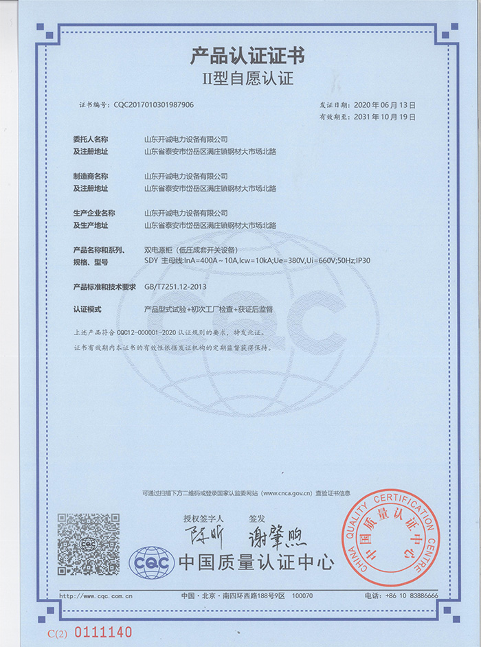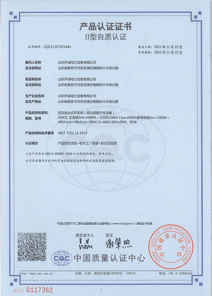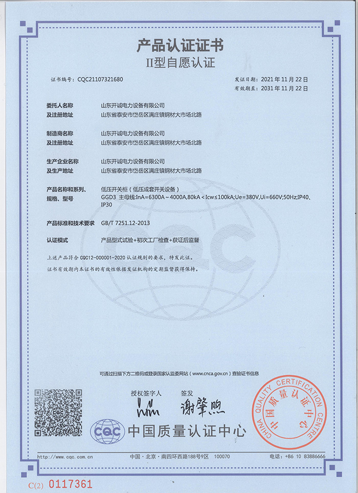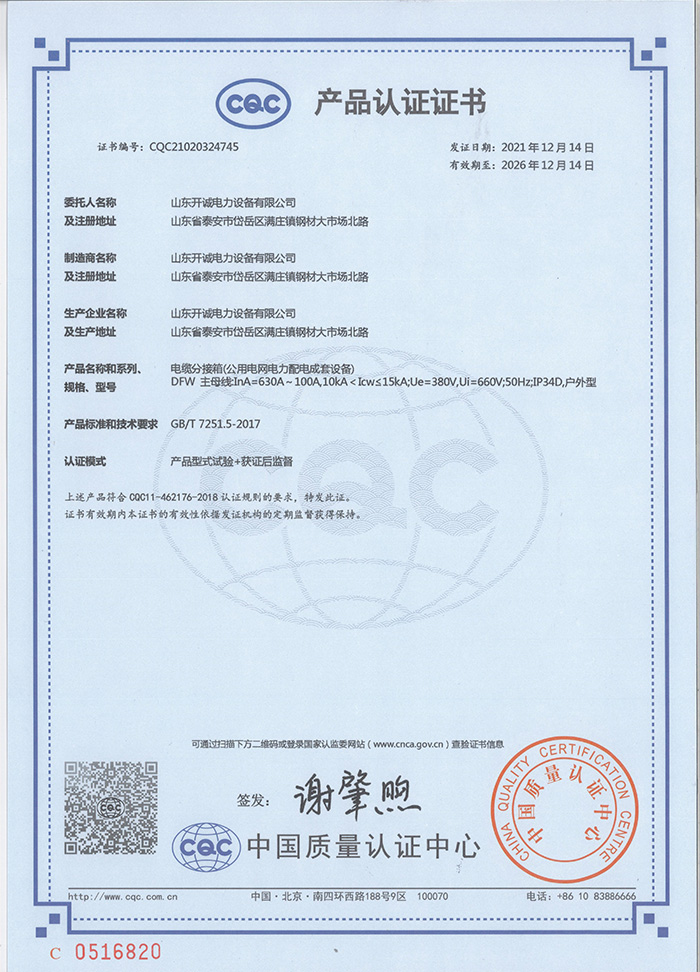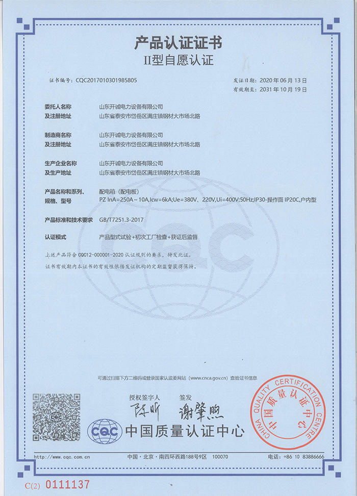 山東開誠電力設備有限公司坐落在泰山腳下,是以生產各類高中低壓成套電力設備、箱式變電站、預制艙、電纜橋架及 PLC 電氣自動化系統等為主的企業。